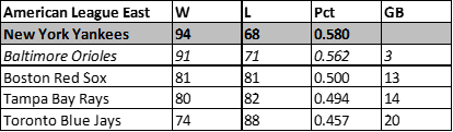 A. L. East Division Champion