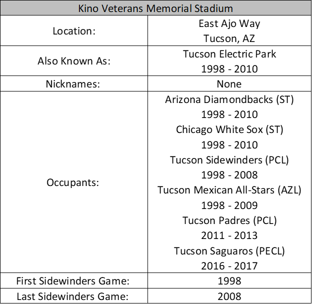 Ballparks, Baseball Feats Kino Veterans Memorial Stadium (Tucson) Date: September 1, 2017Author: willb2032 0 Comments Share this: Click to share on X (Opens in new window) X Click to share on Facebook (Opens in new window) Facebook Like Loading... Related