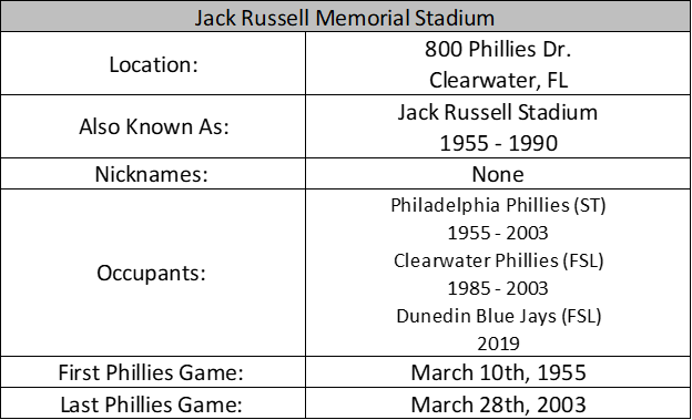 Ballparks, Baseball Feats Jack Russell Memorial Stadium (Clearwater) Date: January 25, 2018Author: willb2032 0 Comments Share this: Click to share on X (Opens in new window) X Click to share on Facebook (Opens in new window) Facebook Like Loading... Related