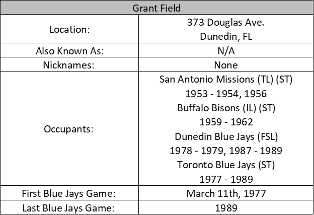 Ballparks, Baseball Feats Grant Field (Dunedin) Date: January 20, 2019Author: willb2032 0 Comments Share this: Click to share on X (Opens in new window) X Click to share on Facebook (Opens in new window) Facebook Like Loading... Related