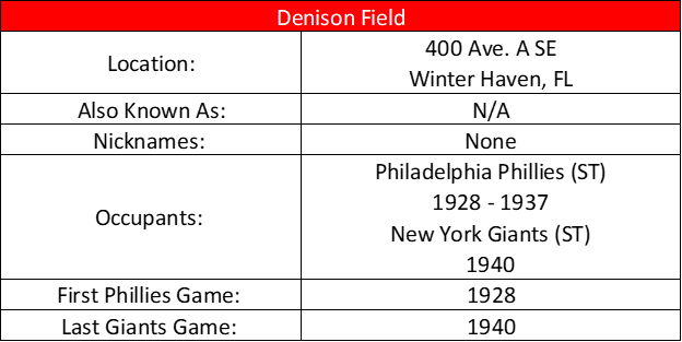 Ballparks, Baseball Feats Denison Field (Winter Haven) Date: July 8, 2020Author: willb2032 0 Comments Share this: Click to share on X (Opens in new window) X Click to share on Facebook (Opens in new window) Facebook Like Loading... Related