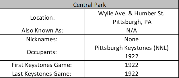 Ballparks Central Park (Pittsburgh) Date: June 1, 2021Author: willb2032 0 Comments 1922 a Pittsburgh Keystones (9) vs. Cuban Stars (7) July 14th, 1922 Share this: Click to share on X (Opens in new window) X Click to share on Facebook (Opens in new window) Facebook Like Loading... Related