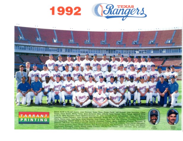 The 1992 edition of the Texas Rangers won eight less games than in 1991. Texas finished in fourth place, nineteen games behind the division-winning Oakland Athletics. The Rangers played solid if uninspiring ball through the end of June with a mark of 43-37. An 11-15 mark in July cost manager Bobby Valentine his job after seven seasons at the helm. Toby Harrah was named as the interim manager, and the Rangers finished the season 32-44.